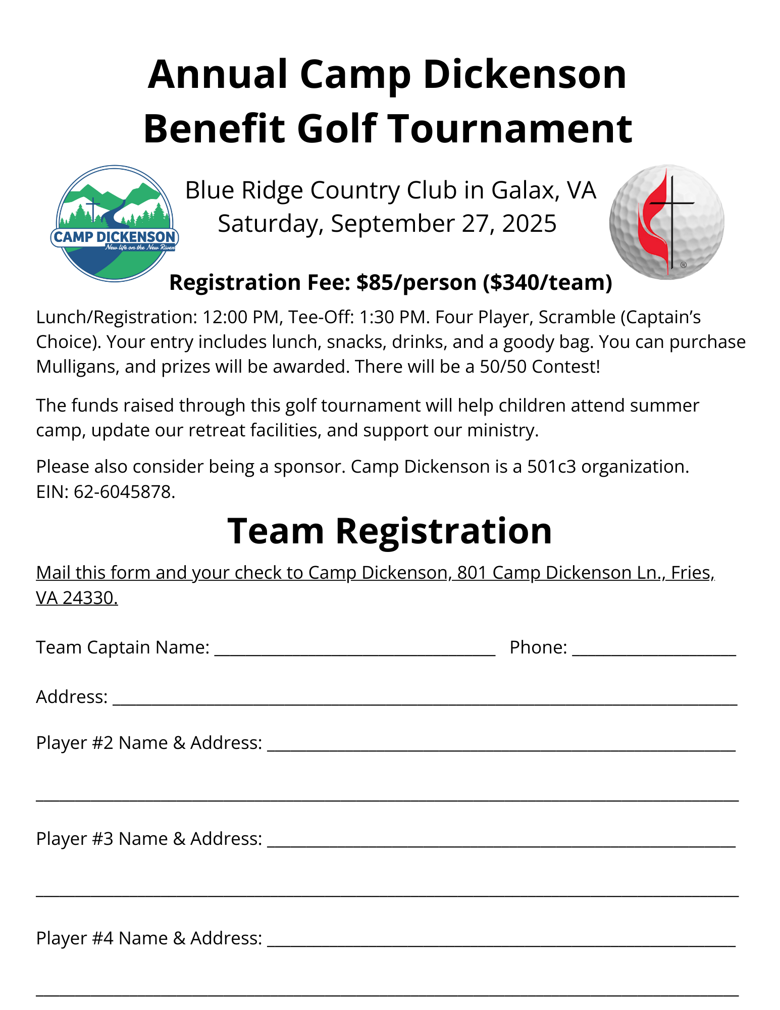 2025 Annual Benefit Golf Tournament Team Registration